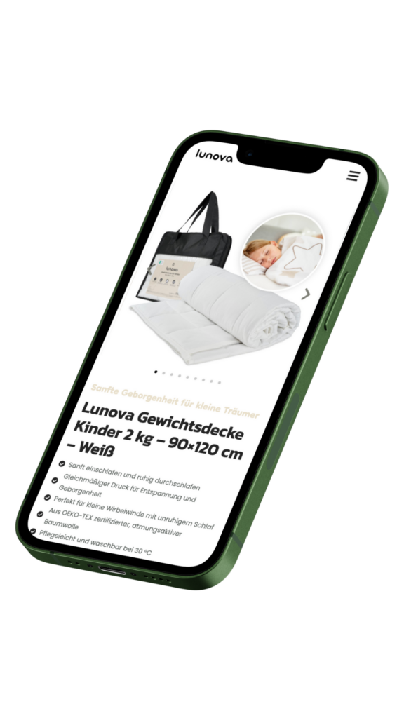Lunova steht für hochwertige Produkte, die das Wohlbefinden deiner Familie fördern. Ob beim Schlafen, Entspannen oder im Alltag – unsere Produkte vereinen Komfort, Qualität und durchdachtes Design, damit du und deine Liebsten mehr Ruhe und Geborgenheit erleben.
